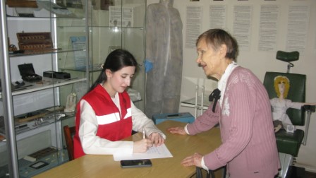 В наши дни процесс безвозмездной передачи документов, личных вещей, предметов материальной культуры продолжается. Наш гость из Челябинска Виктор Александров – человек далекий от медицины. Но его увлечение историей здравоохранения настолько сильно, что каждый раз, бывая в музее, он делится интересными фактами и предметами. Переданный им военно-медицинский перевязочный набор 60-х годов – из разряда резервных на случай военных действий, особенно актуален в период подготовки к 70-летию Великой Победы.