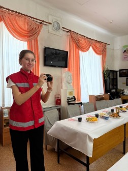 Хочется отметить активное участие в мероприятии волонтёров Российского Красного Креста – студентов Свердловского областного медицинского колледжа. Ребята помогли расставить и накрыть столы, провели регистрацию ветеранов на мероприятие, следили, чтобы у всех уважаемых гостей был горячий чай, организовали фотофиксацию мероприятия. А серебряные волонтёры музея предварительно обзвонили каждого участника киноклуба и спросили, сможет ли он присутствовать. Благодаря им в зале в этот день собралось 22 ветерана. В общем, современные музейщики без волонтёров как без рук!