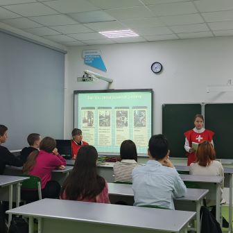 8 декабря волонтеры Красноуфимского местного отделения ВОД «волонтеры-медики» организовали и провели урок здоровья для студентов первого курса Краснокфимского филиала ГБПОУ «СОМК» в рамках реализации проекта «С заботой о родных», который реализуется при поддержке Министерства здравоохранения Свердловской области.