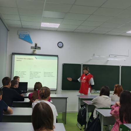 В ходе встречи волонтеры рассказали школьникам о том, как распознать инсульт и что нуж