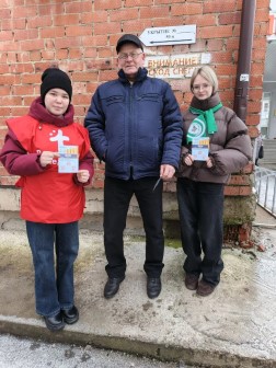 Волонтеры Красноуфимского местного отделения ВОД «Волонтеры медики» поздравили жителей города с наступающим праздником С Днем Победы и вручили им георгиевские ленточки.