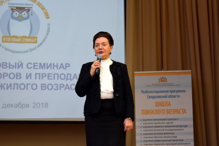 20 декабря 2018 года в колледже  состоялся Итоговый семинар для организаторов и преподавателей Школ пожилого возраста. Организаторы: ГКУСОН СО «Организационно – методический центр социальной помощи», РОО «Ассоциация средних медицинских работников Свердловской области» и   ГБПОУ «Свердловский областной медицинский колледж».
