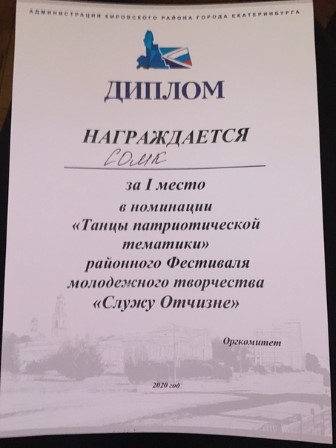 27 февраля - студия танца "Созвездие" стали трёхкратными лауреатами I​ степени в номинации «Танцы патриотической тематики», XIII фестиваля молодежного творчества «Служу России» в рамках Месячника защитника Отечества «России славные сыны».