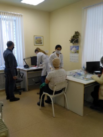 В течение двух дней состоялся очень интересный опыт работы в команде, практика работы с пациентами на базе ОВП. Приходилось быстро предупреждать конфликтные ситуации, которые могли бы возникнуть в силу длительного ожидания: вместо запланированных 20 пациентов пришли 60!