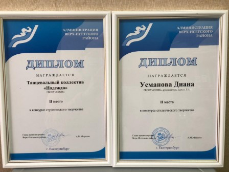 Дипломом первой степени был награжден вокальный ансамбль «Надежда»  и Дипломом  первой степени в номинации «Соло» был удостоен Звездин Александр проникновенно исполнивший песни «Русский вальс». Диплом второй степени получила Усманова Диана.