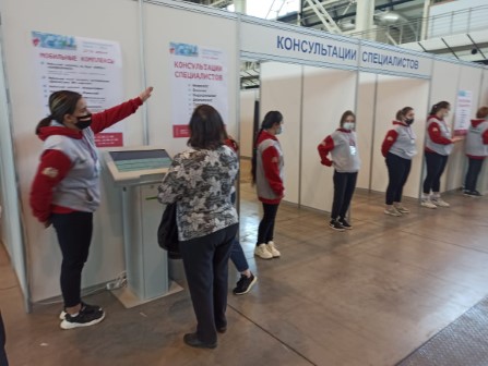 35 волонтеров СОМК сопровождали работу 21 врача-специалиста, центра здоровья и передвижных медицинских модулей в Екатеринбург -ЭКСПО на Второй Межрегиональной выставке " Здравоохранение Урала - 2021". Медики, с которыми работали наши волонтеры отмечают слаженность действий, умение работать в команде, коммуникабельность и ответственность наших студентов.