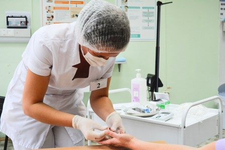 Выполняя практические задания, медицинским сёстрам предстояло выявить факторы риска развития неинфекционных заболеваний, провести обучение жителей правилам оказания первой помощи при остром коронарном синдроме, остром нарушении мозгового кровообращения, острой сердечной недостаточности. Конкурсанты проводили исследования в рамках первого этапа диспансеризации взрослого населения, а также одним из заданий была постановка беседы с пациентами по профилактике новой коронавирусной инфекции.