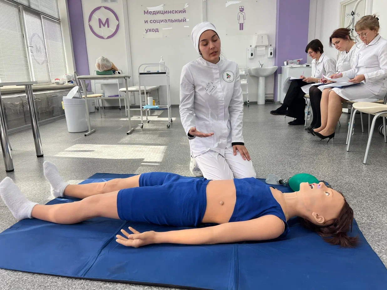 Во время конкурса 28 марта 2025 года по специальности «Сестринское дело» и 31 марта 2025 года по специальности "Лечебное дело " студенты демонстрировали навыки проведения СЛР на роботе-симуляторе Lisa компании «EIDOS», предназначенного для отработки навыков проведения расширенного протокола жизнеобеспечения.