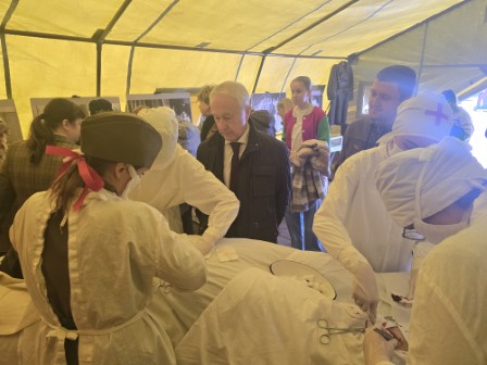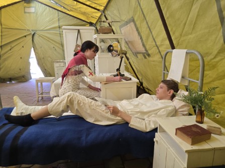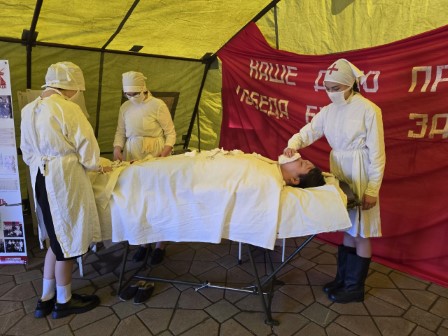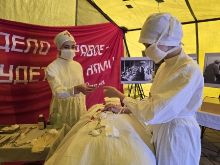 «По легенде я санинструктор, занимаюсь пропагандой донорства крови, рассказываю посетителям эвакогоспиталя о работе Красного Креста в годы войны. Горжусь, что участвую в таком проекте, ведь это сохранение памяти, погружение в историю страны, частью которой были мои прапрадеды и прапрабабушки», — рассказала студентка СОМК, будущий фельдшер Анна Маркелова.