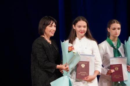 На торжественной церемонии особо отметили достижения выпускников, проявивших себя во Всероссийских конкурсах профмастерства, волонтёрском движении и научной деятельности. Из рук министра здравоохранения дипломы получили 30 лучших выпускников. Среди них — серебряный призёр Всероссийского конкурса профмастерства «Профессионалы» Екатерина Швецова.