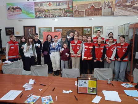Посетителями стали школьники 7 и 8 класса школы «А-Я Академия», которых привели на занятие прекрасные педагоги - директор школы Юлия Алексеевна ЛУКИНОВА и классный руководитель Татьяна Григорьевна КОРОЛЁВА. Очень много интересного узнали ребята о истории добровольчества в нашем городе за короткое, но содержательное занятие.
